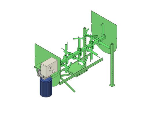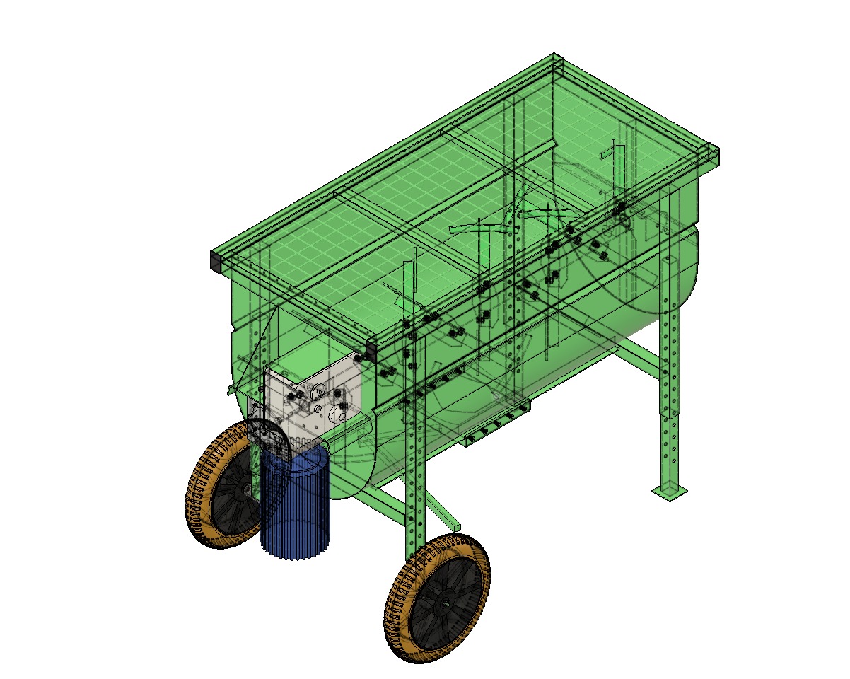 A machine for mixing hempcrete — a blend of hemp hurd, lime, and water used in sustainable construction — has been constructed.